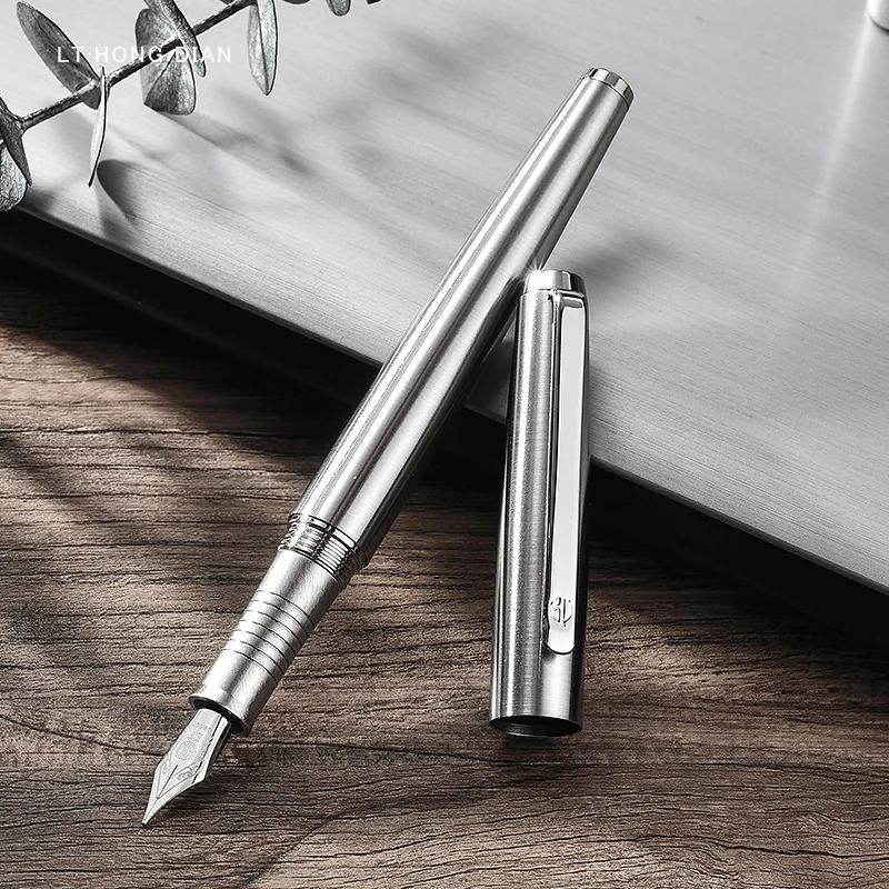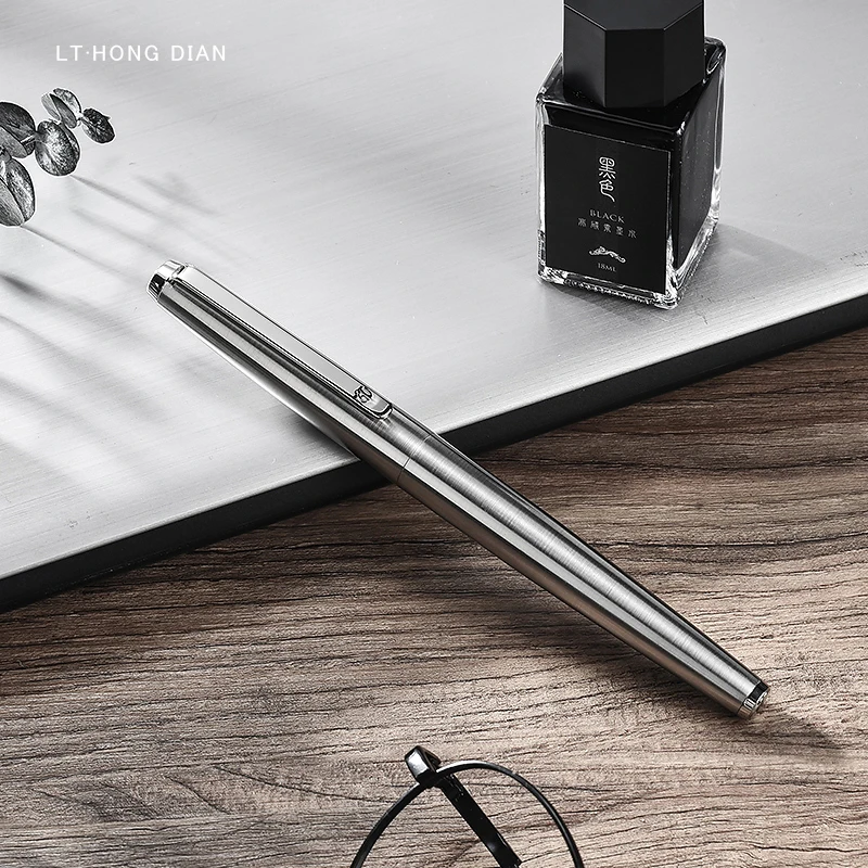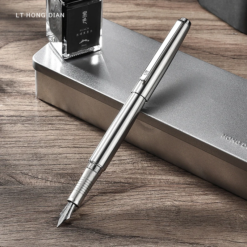 LT Hongdian 517S металлическая Серебряная авторучка из нержавеющей стали EF/F/изогнутое перо отличный подарок для письма чернильная ручка для бизнеса офиса дома:Спецификация: