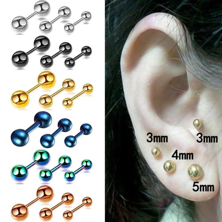 Описание:Материал: нержавеющая стальРазмер: 3 мм/4 мм/5 ммЦвет: серебристый, черный, золотой, синий, розовое золото, разноцветныйКоличество: 1 пара