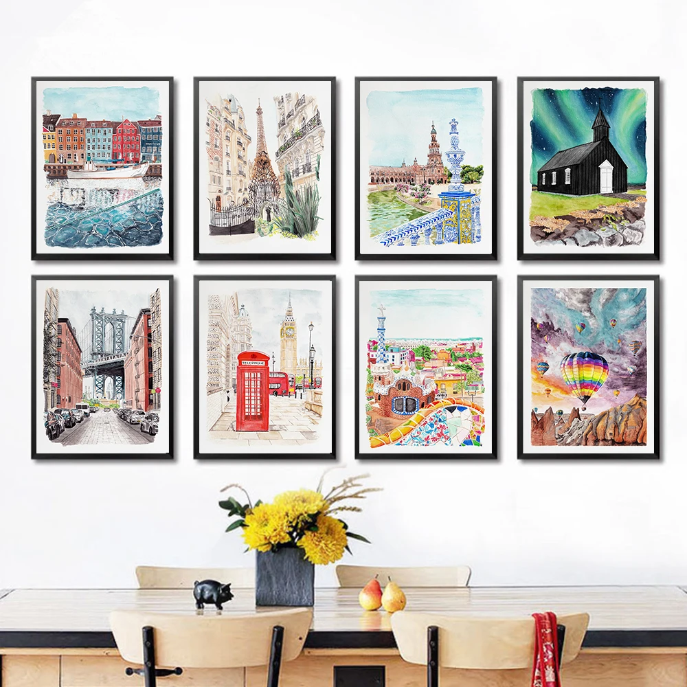 Городской пейзаж, плакат, природная Барселона, архитектура, холст, живопись, путешествия, Настенная картина, гостиная, домашний декор