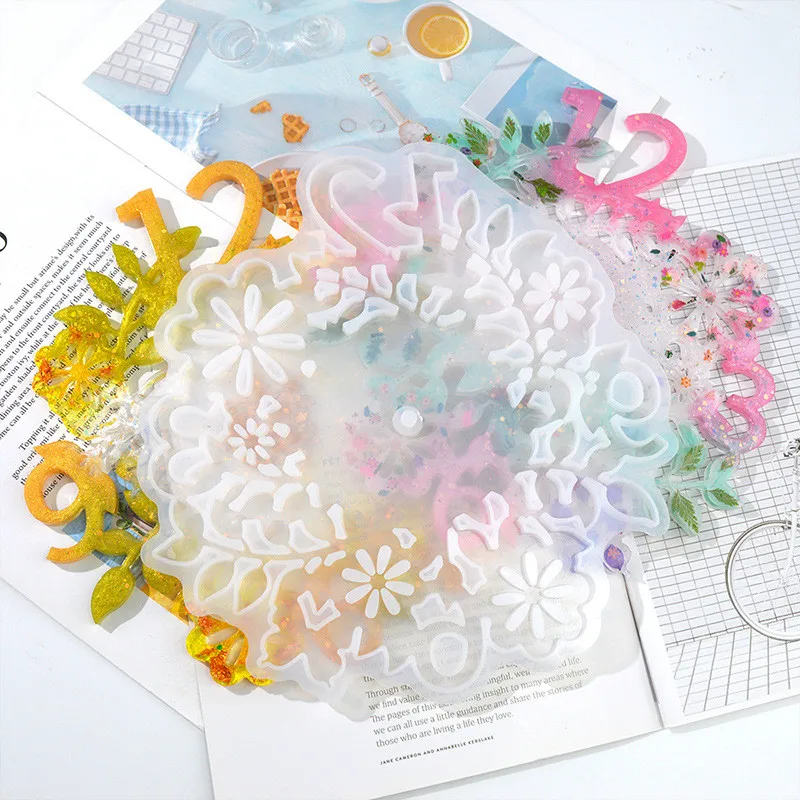 Арабские цифры, цветы, часы, силиконовые формы для эпоксидной смолы...