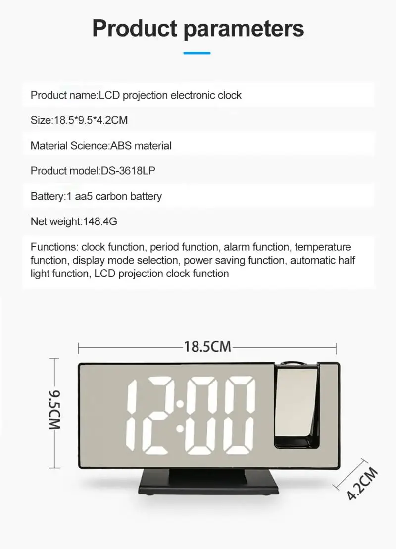 3) Светодиодный Проекция времени: проекция четкая и угол проекции можно регулировать; Нажмите клавишу проекции для включения или выключения;