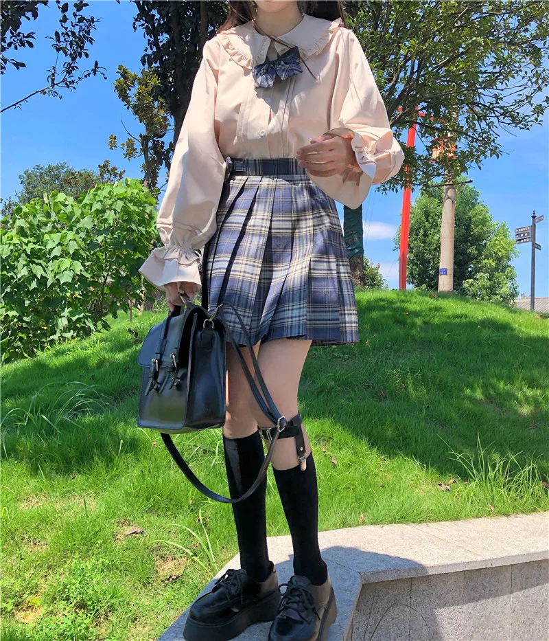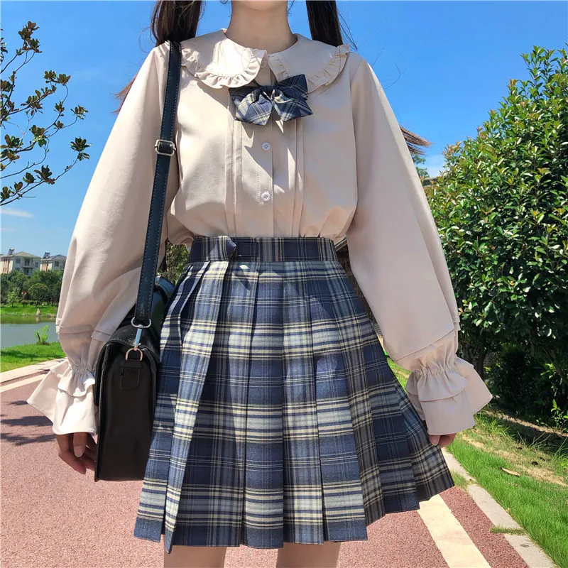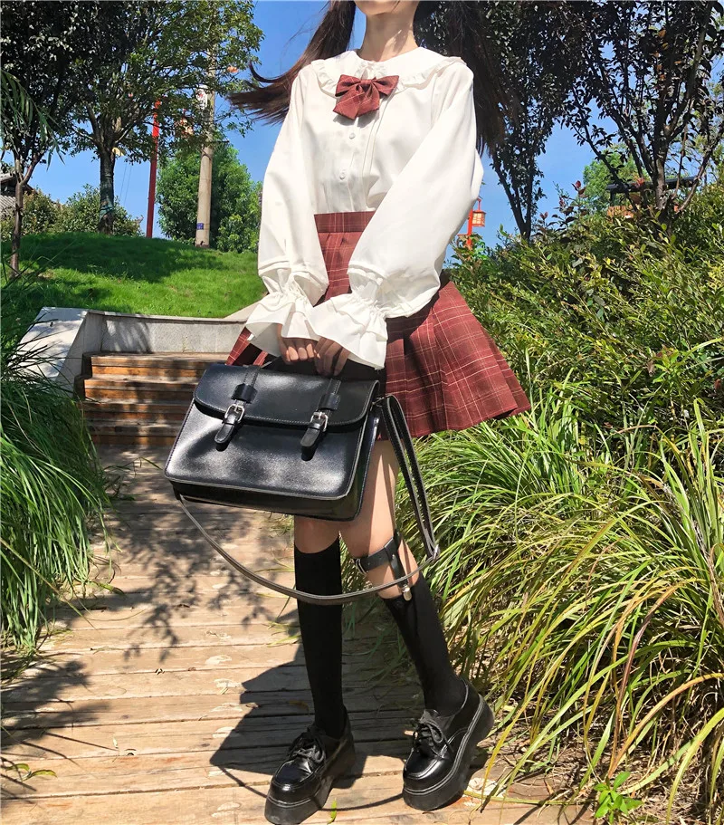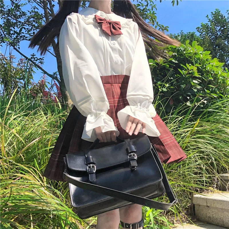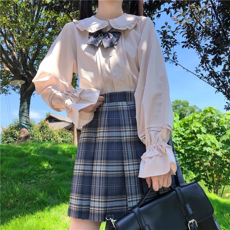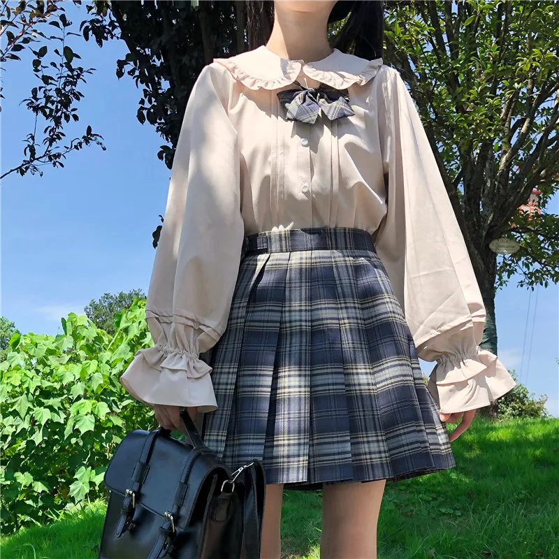 Белая рубашка с длинным рукавом для девочек-подростков на весну-осень в японском стиле преппи милые блузки в Стиле Лолита с воротником Питер Пэн с рюшами Топы