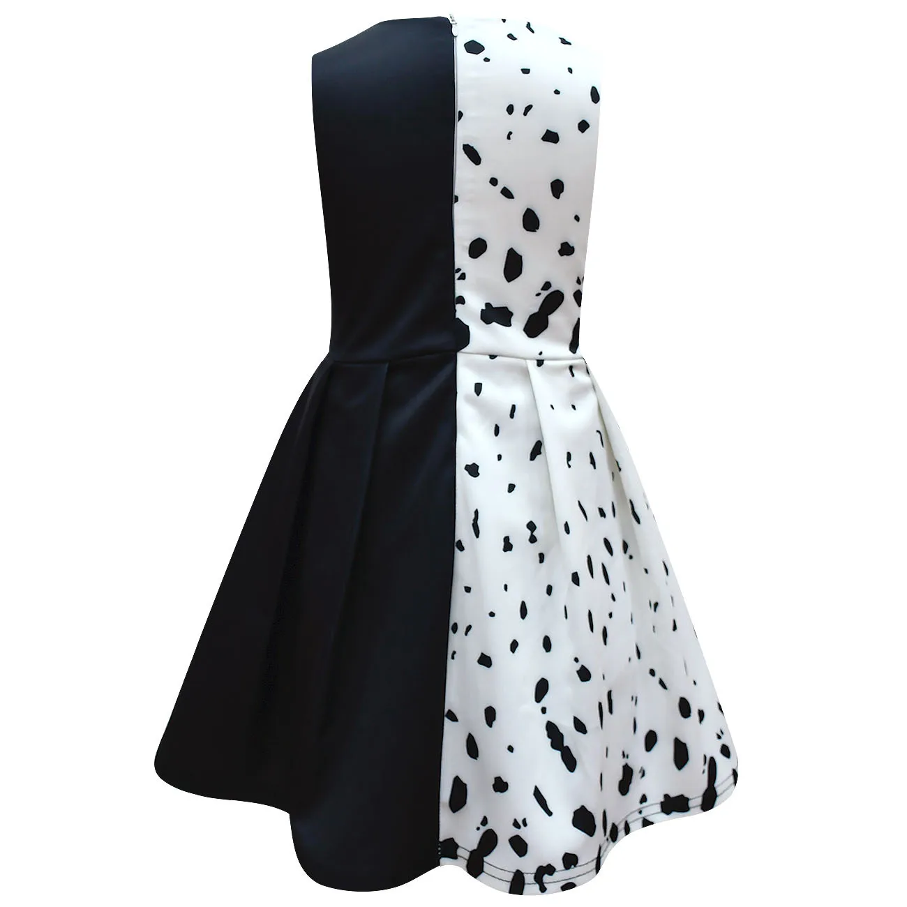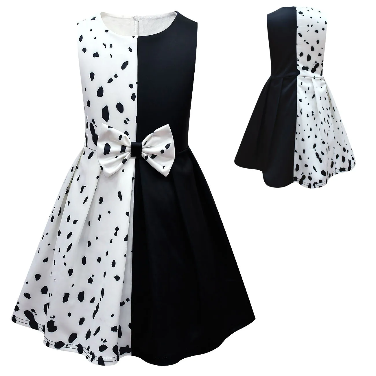 Детский костюм принцессы Cruella, платье для девочки, косплей, летняя детская фантазия, одежда на Хэллоуин, парик, вечеринка на день рождения