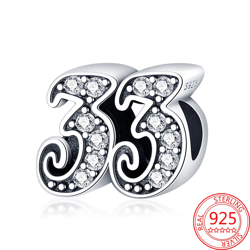 Подвеска с номером возраста, оригинальные зеркальные серебряные бусины с номером CZ 13, подходят для браслетов Pandora, сделай сам, цифровой Подарок на годовщину возраста