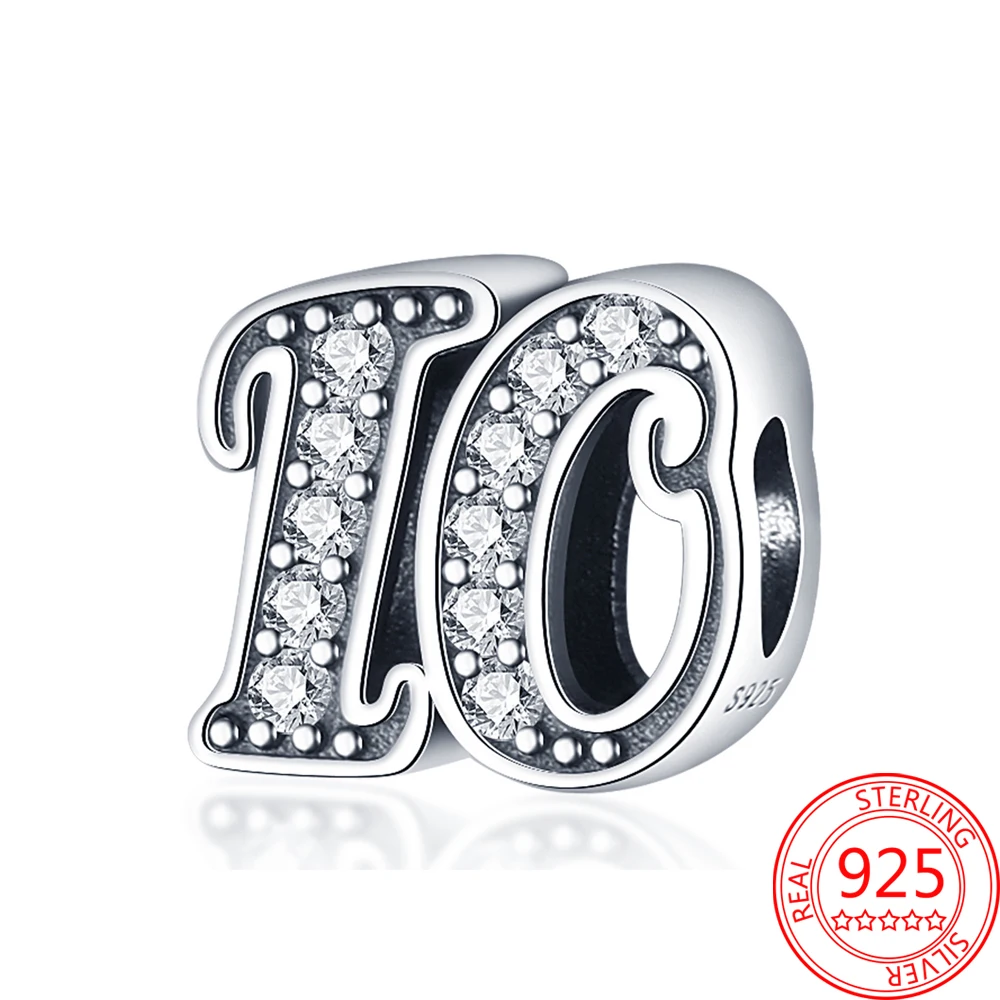 Подвески-цифры из серебра 925 пробы для браслетов Pandora, 10 видов