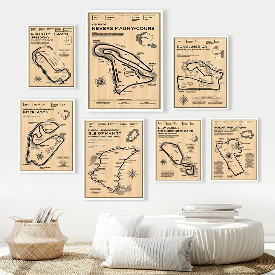 Винтажная F1 формула гоночный автомобиль схема настенная Картина на холсте скандинавские плакаты и принты настенные картины для гостиной домашний декор