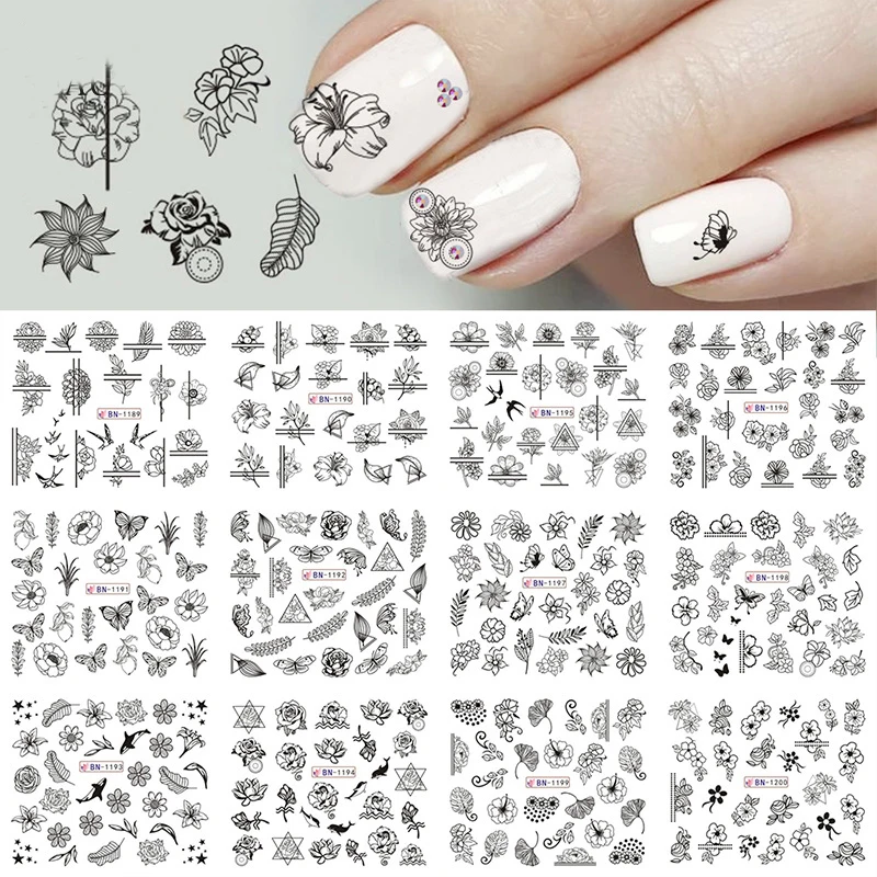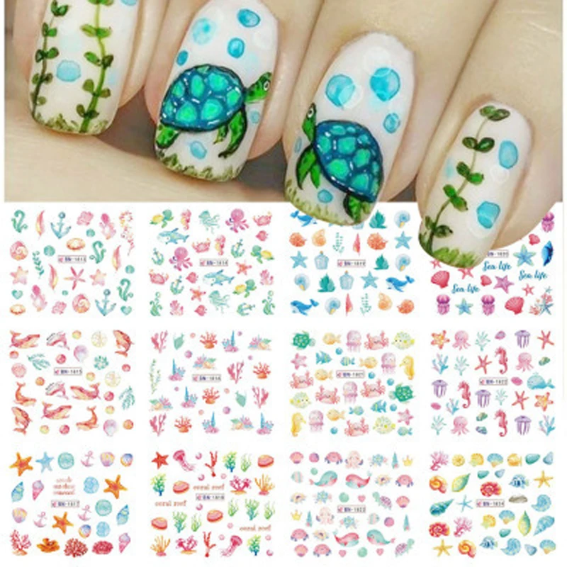12 шт., наклейки-Слайдеры для дизайна ногтей