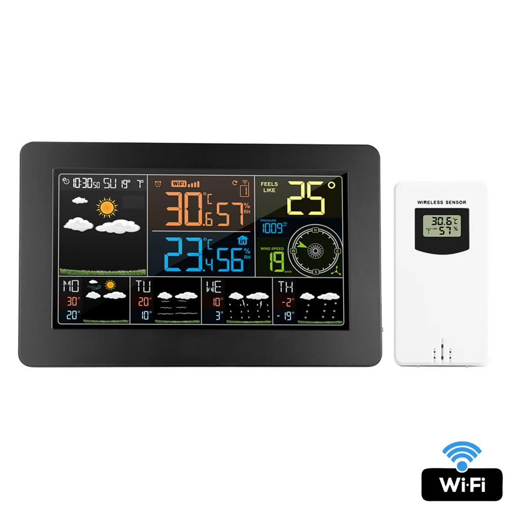 Цифровые настенные часы с будильником FanJu, уличная метеостанция с Wi-Fi, для прогноза погоды, температуры, влажности, давления, ветра, направления, скорости