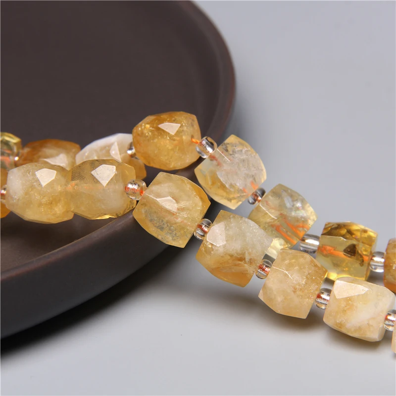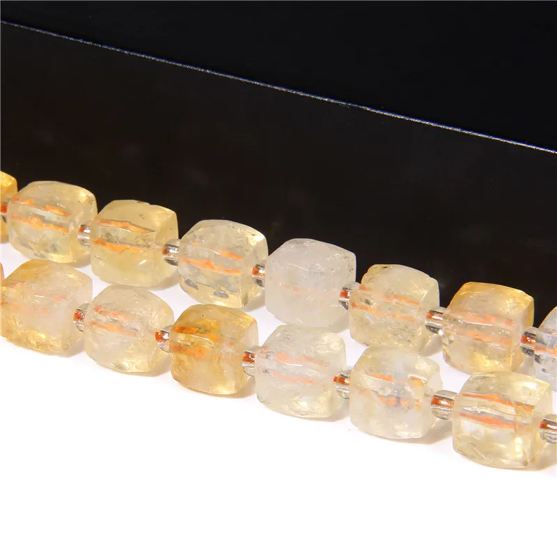 Натуральный Необработанный минеральный камень, бусины квадратной формы, цитрин, кварц, рейки, бусины из лечебных камней, ожерелье, браслет