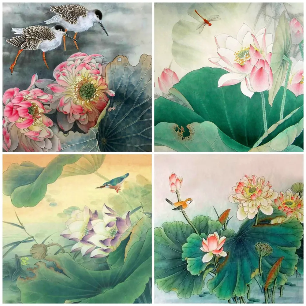 Алмазная вышивка Huacan 5D набор Лотос Алмазная мозаика картина цветок картина Стразы подарок украшение спальни