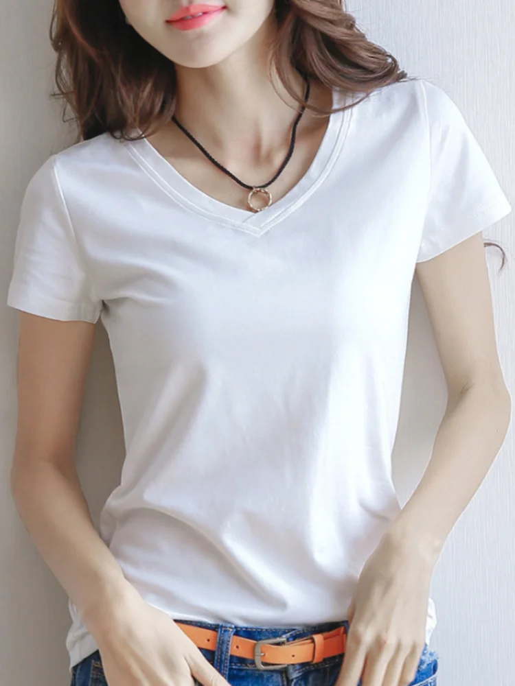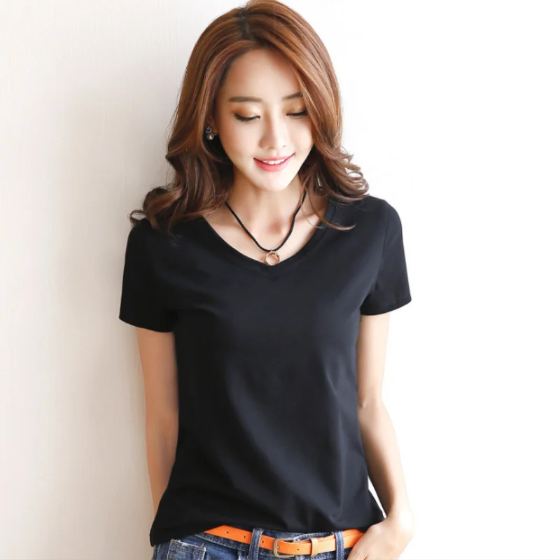 Корейская версия однотонной футболки с V-образным вырезом и коротким рукавом, нижняя рубашка 2022, женские футболки, сексуальные топы, футболка для тренажерного зала