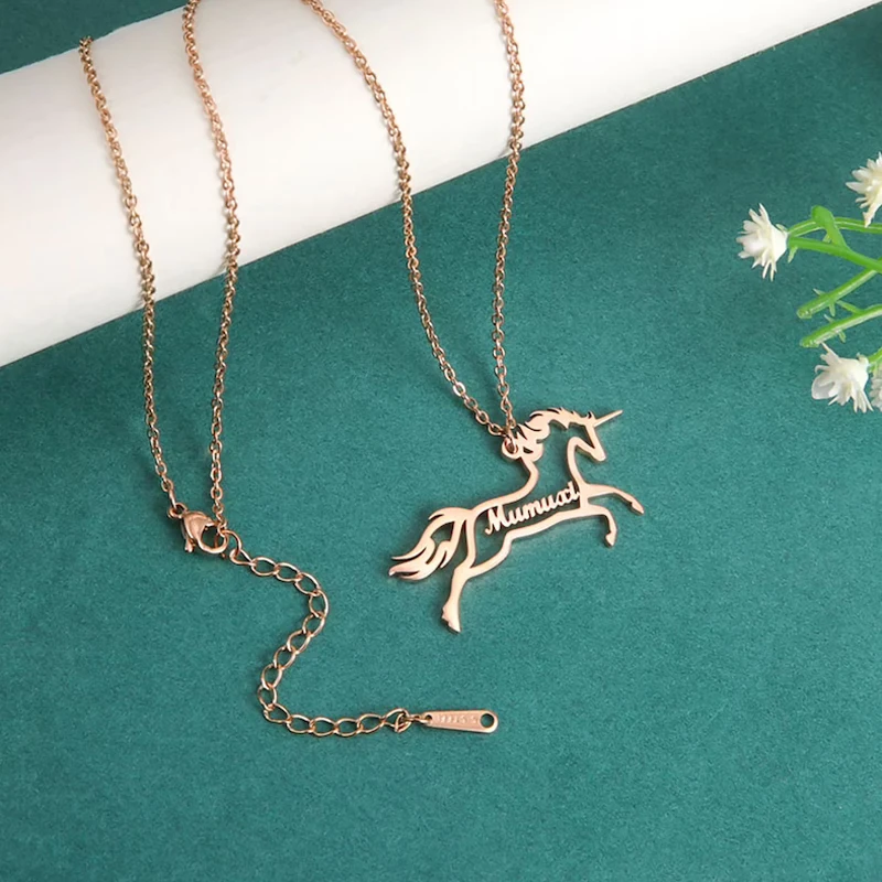 Ожерелье с именем единорога из нержавеющей стали под заказ для женщин модная свадебная цепочка до ключиц значок на День Святого Валентина подарок