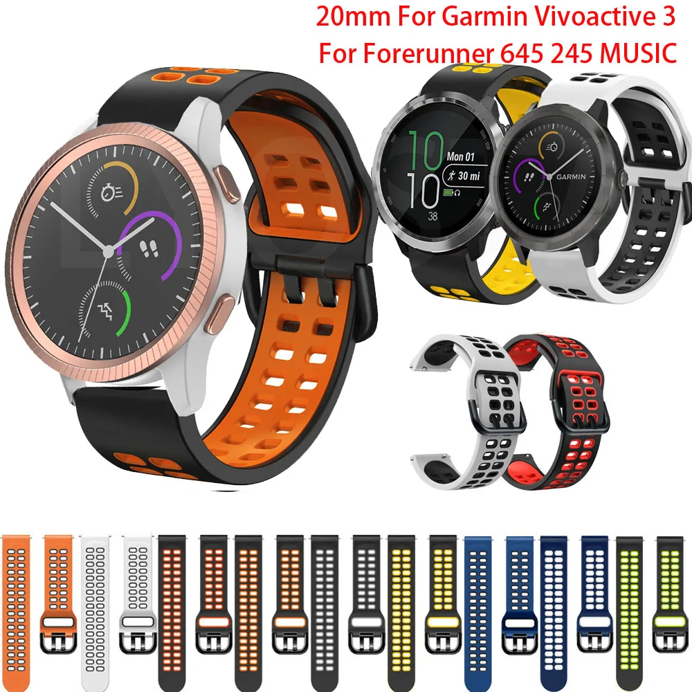 Ремешок силиконовый для Garmin Vivoactive 3 MUSICGarmin BenzSQForerunner 645 245, аксессуары для часов, 20 мм
