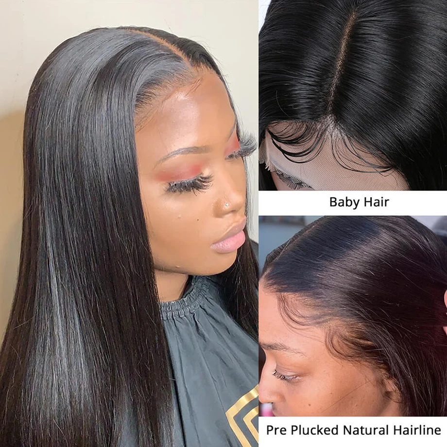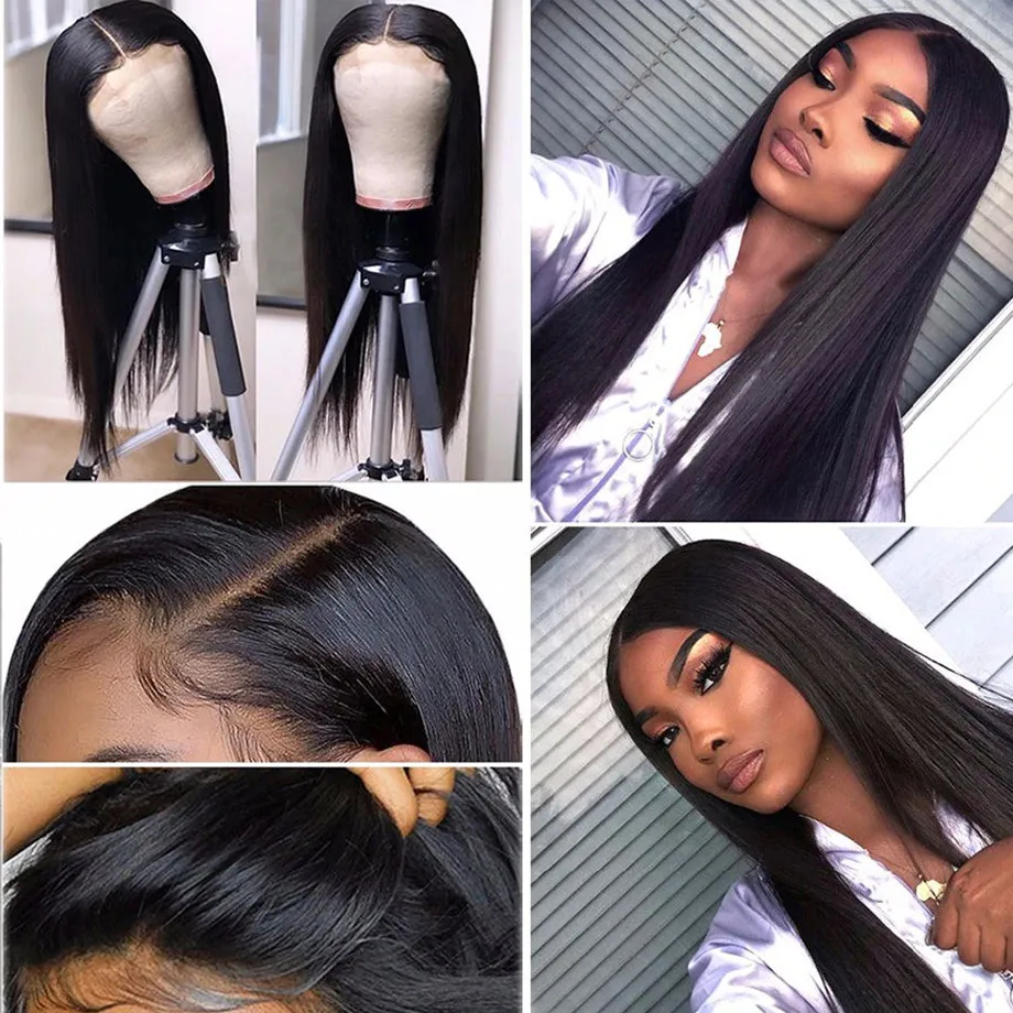 Прямые черные человеческие волосы парики 4x4 HD прозрачные парики н...