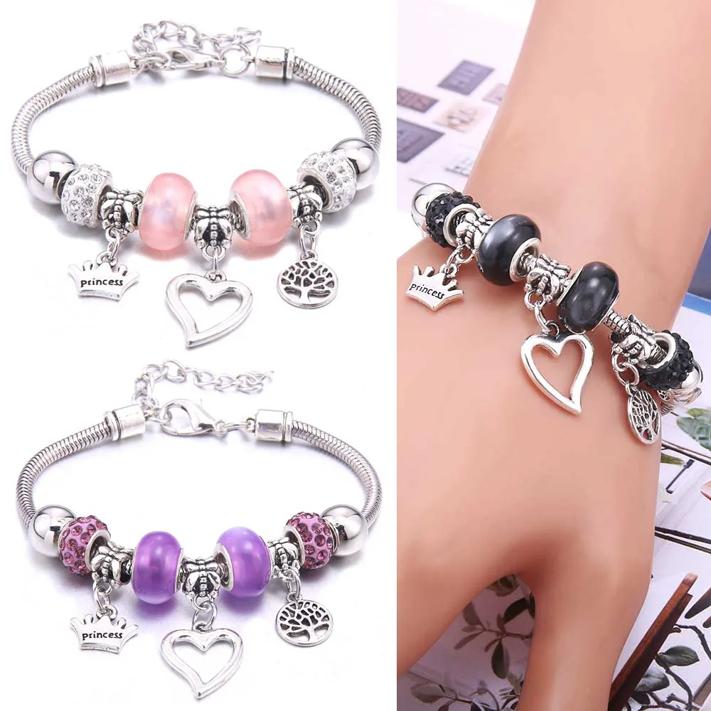 Браслет с подвесками и браслеты 6 цветов Дерево жизни Хрустальные с...