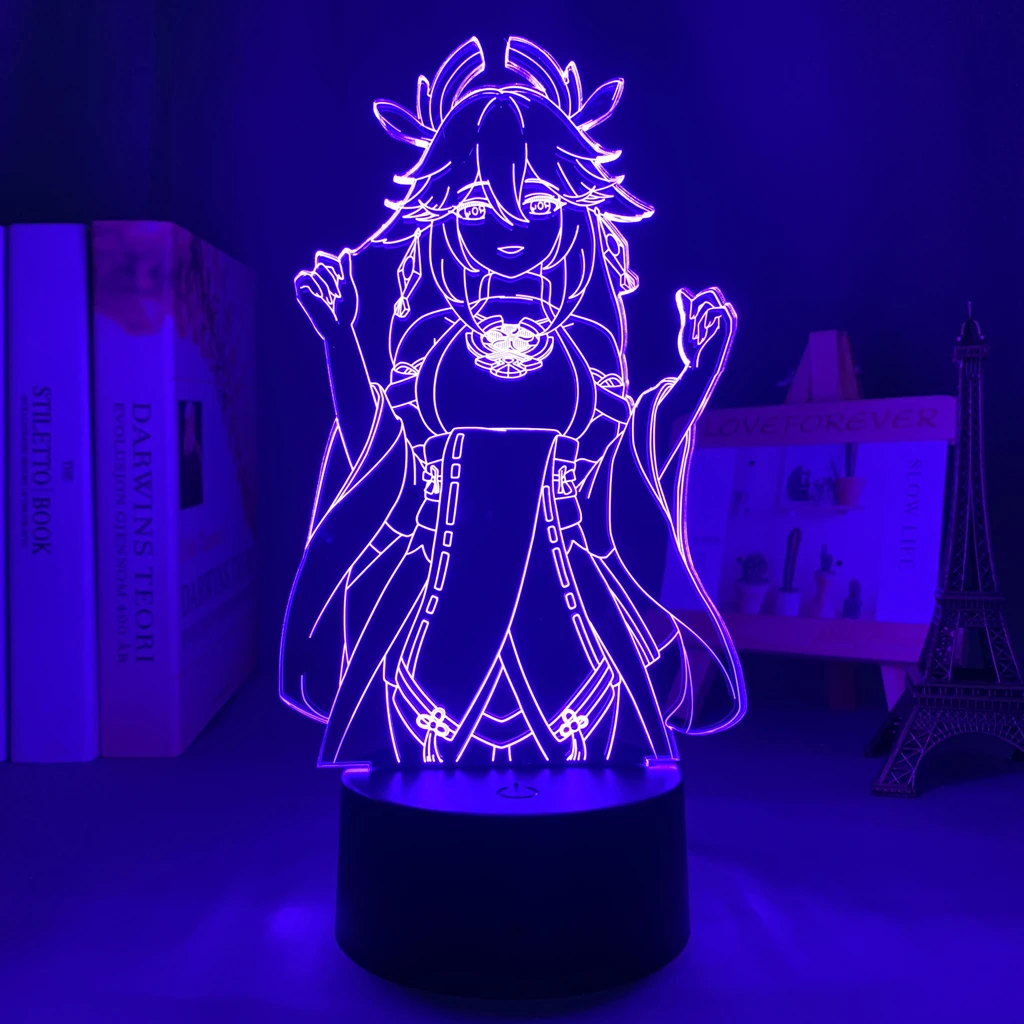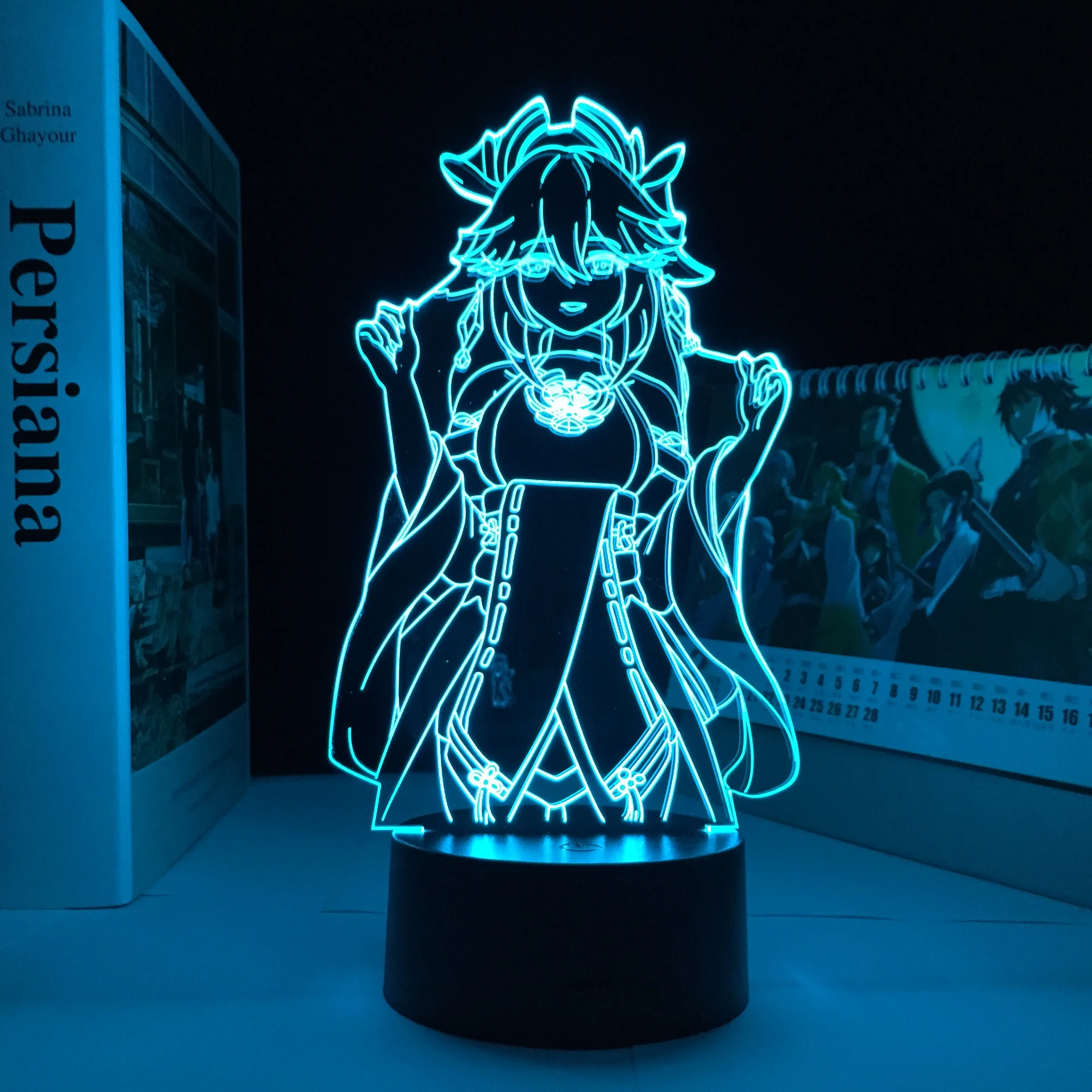 Genshin Impact Yae Miko 3D светодиодный светильник для детей, декор для спальни, подарок на день рождения, светодиодный светильник Genshin Impact