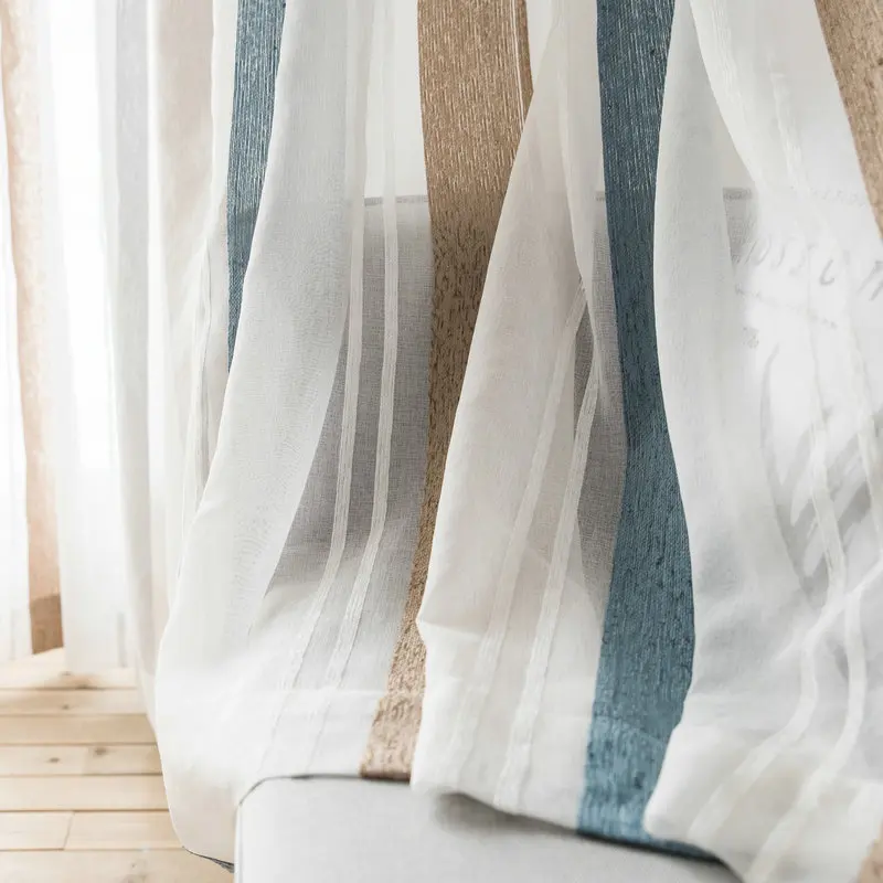 Полупрозрачные занавески из искусственного льна в полоску, для гост...