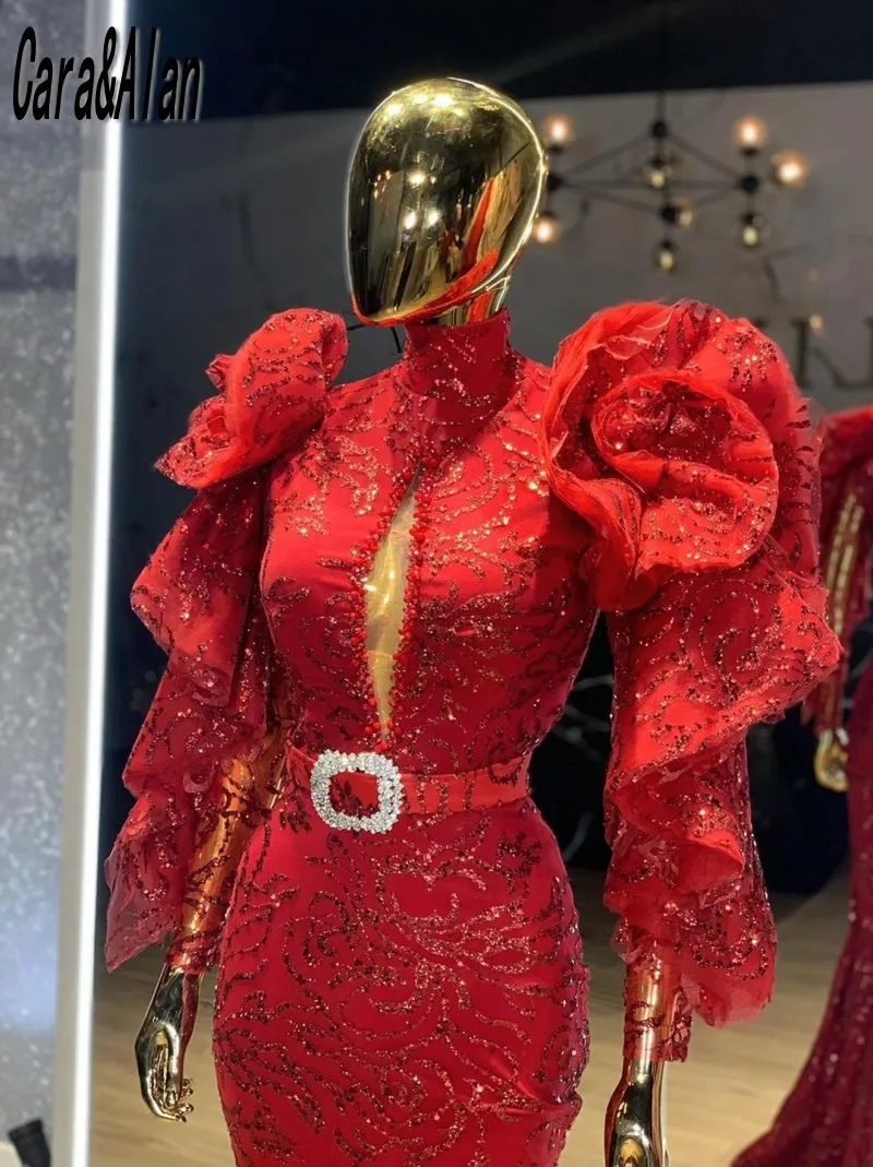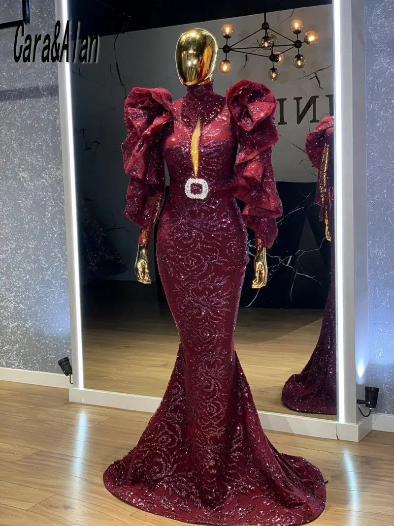 Женское вечернее платье с юбкой-годе, красное платье с длинным рукавом и высоким воротом для выпускного вечера, одежда для вечевечерние