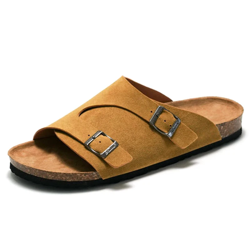 Большие размеры 46; Замшевые кожаные сандалии для мужчин; Летняя классическая мужская обувь; Тапочки; Мягкие пробковые сандалии; Мужские удобные сандалии в римском стиле; Новинка