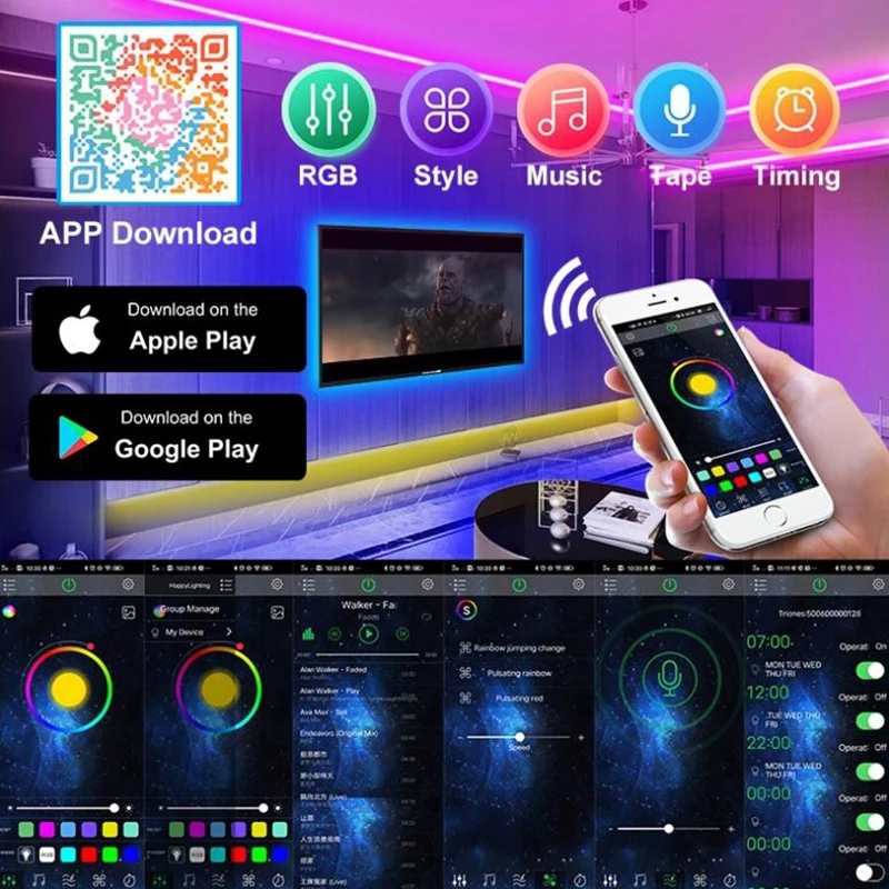 Светодиодная лента с USB, 5 м, Bluetooth, управление через приложен...