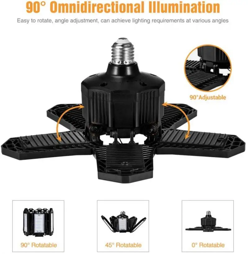 Регулируемый светодиодный потолочный светильник. Уникальный деформирующий широкоугольный Ультра-яркий гаражный светильник, 5 светильник-панели можно отрегулировать на 90 градусов, светильник-угол наклона можно регулировать с 360 ° стабильный светильник со всеми направлениями.