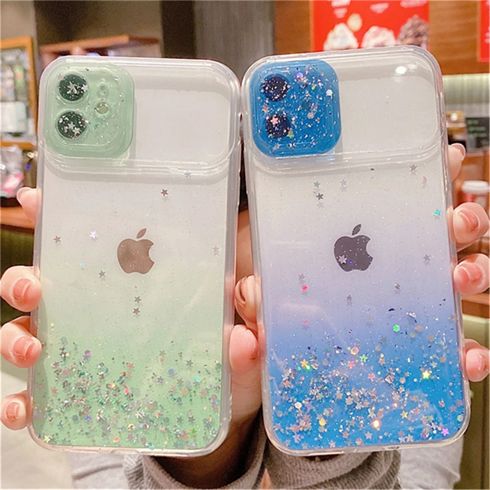 Style:Fashion Bling Sequin Soft Epoxy Slide Camera Protection Phone Case