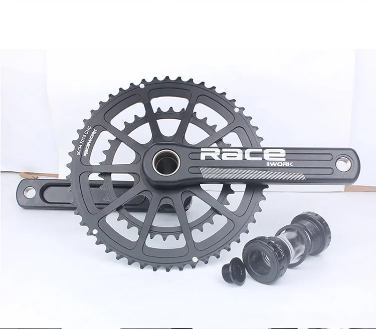 Дорожный велосипед Интегрированный полый двойной зубчатый диск 50-34t52-36t53-39t кривошипный ключ 1170172175 мм Сверхлегкий диск с хризантемой