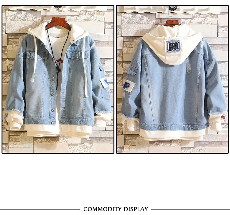 Джинсовая куртка с капюшоном, повседневная верхняя одежда из денима...