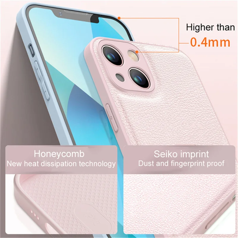 Роскошный противоударный чехол с кожаной текстурой для iPhone 13 12 11 Pro Max XR X XS 7 8 Plus SE 2020 Защита объектива силиконовый цветной чехол