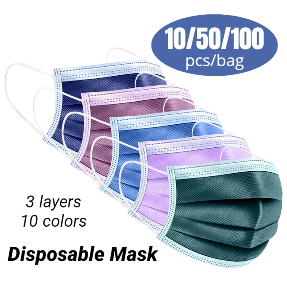 Одноразовые разноцветные противопылевые маски для рта 10-200 шт., Н...