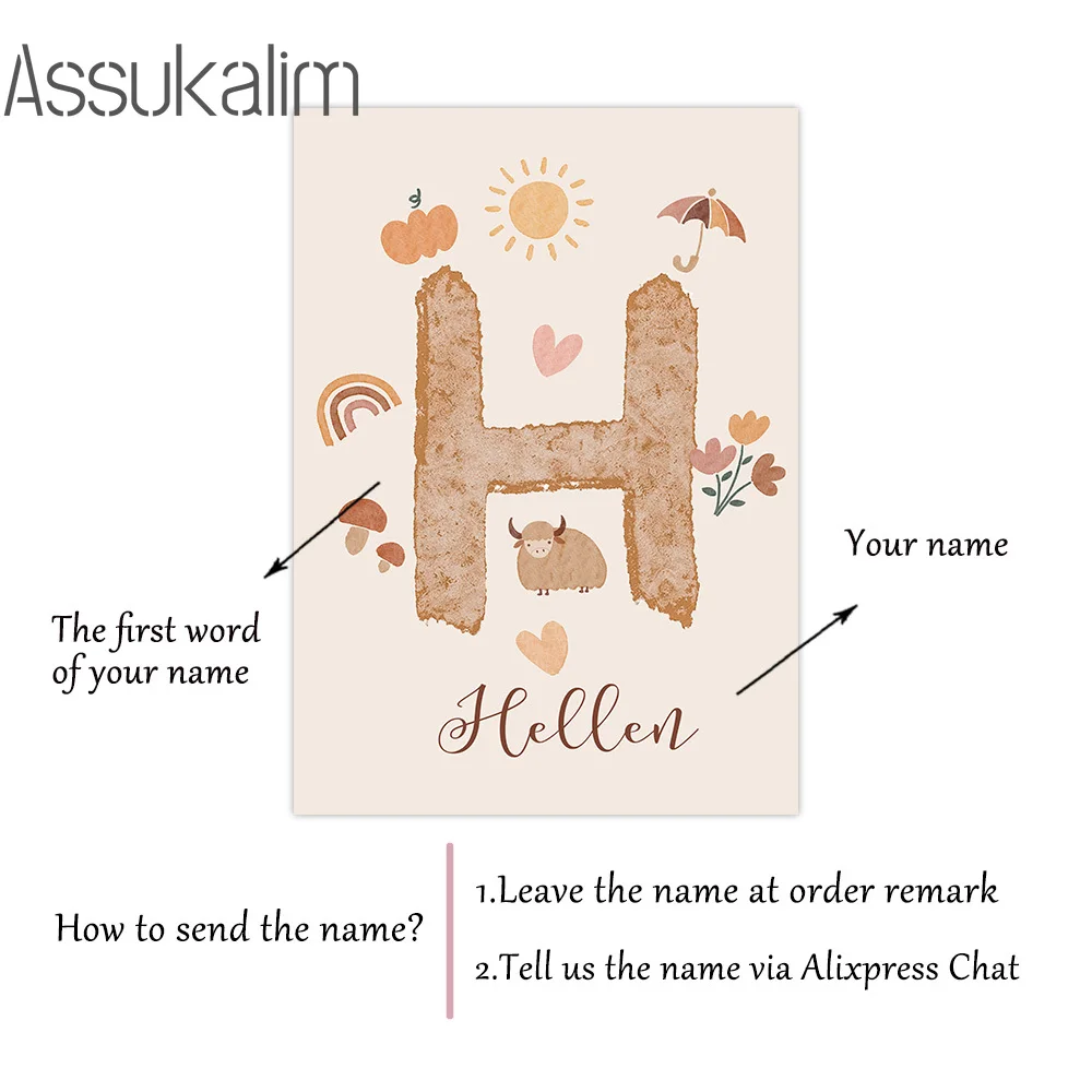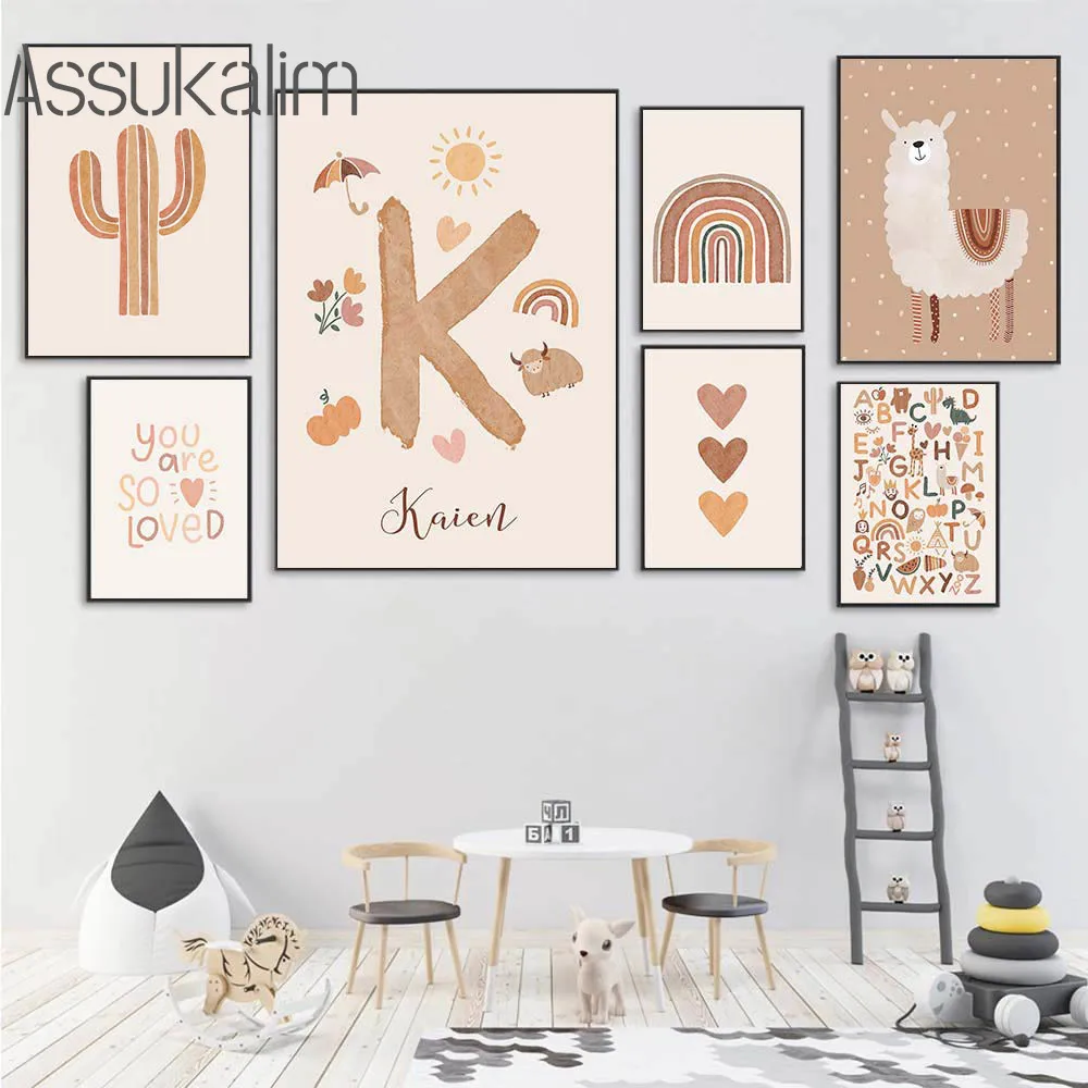 Постеры с именем на заказ, альпака, холст, картина плакат с алфавитом, роспись, кактус, принт, картины для детской, настенное искусство в стиле бохо, декор детской комнаты