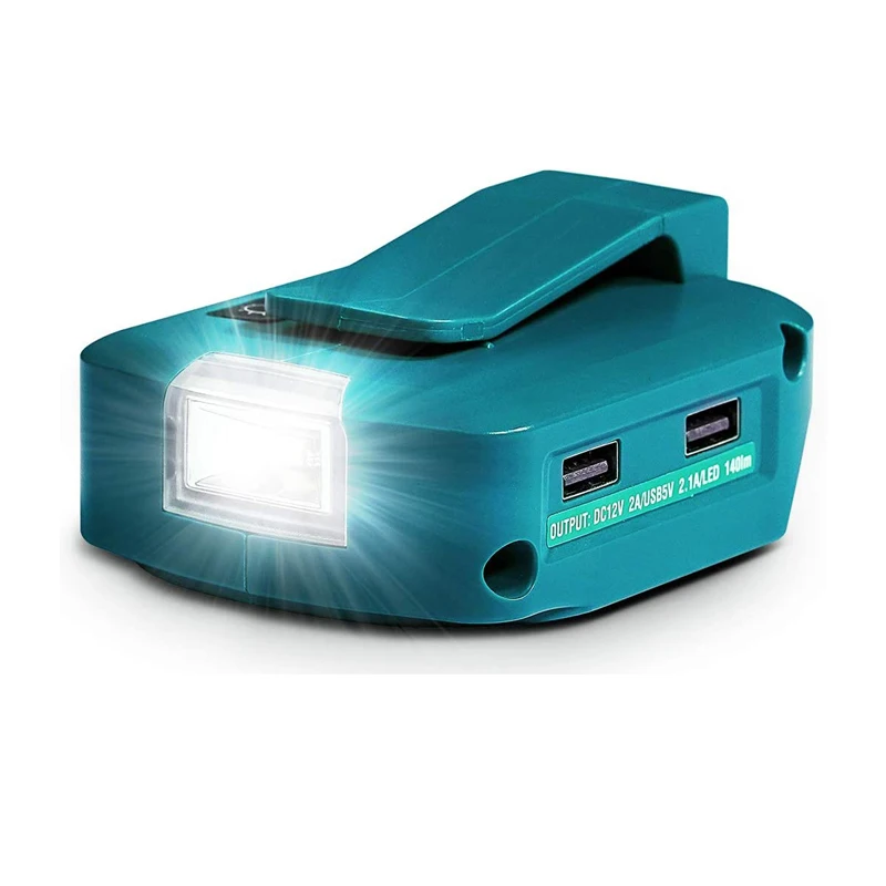 USB преобразователь, 14,4В, 18В, литийионный аккумулятор, двойной разъем USB, светодиодная подсветка, прожектор, фонарик, для аккумуляторов Makita