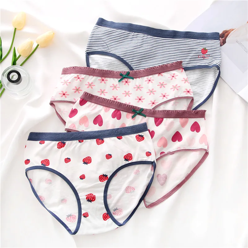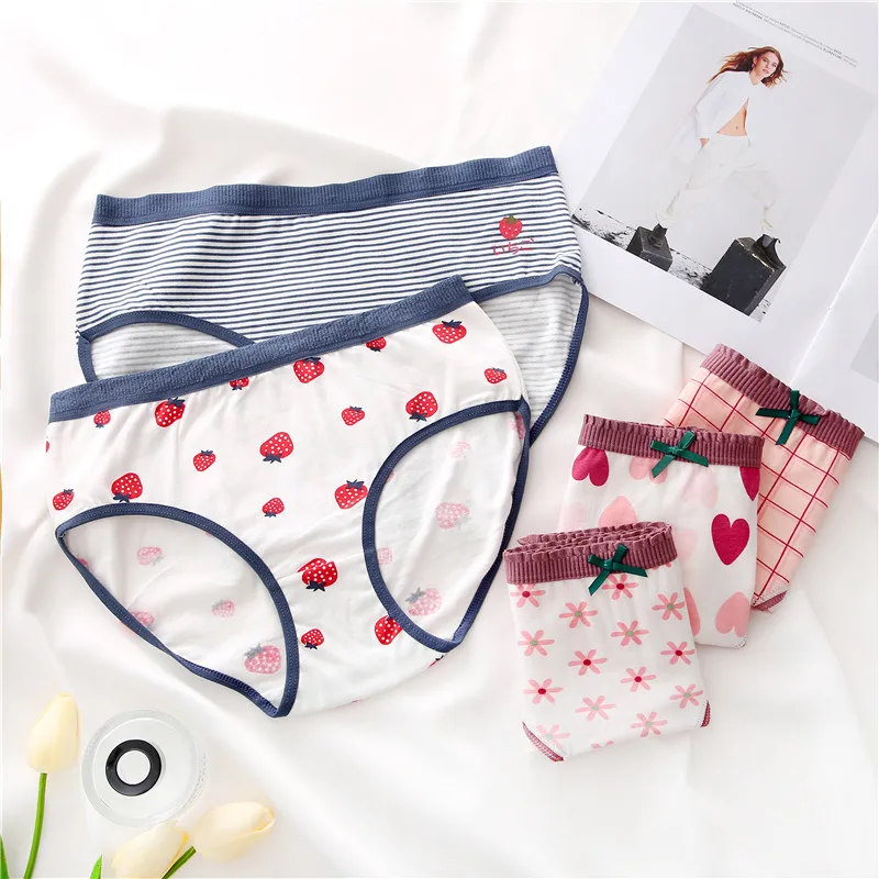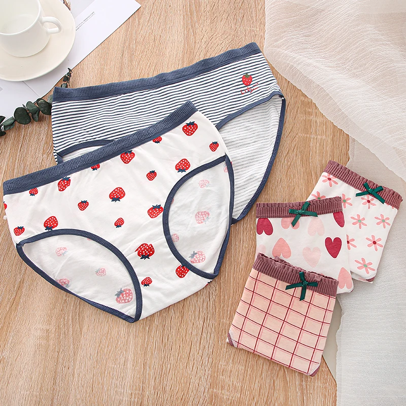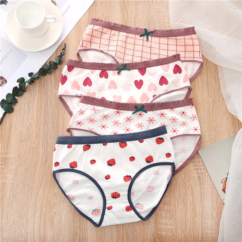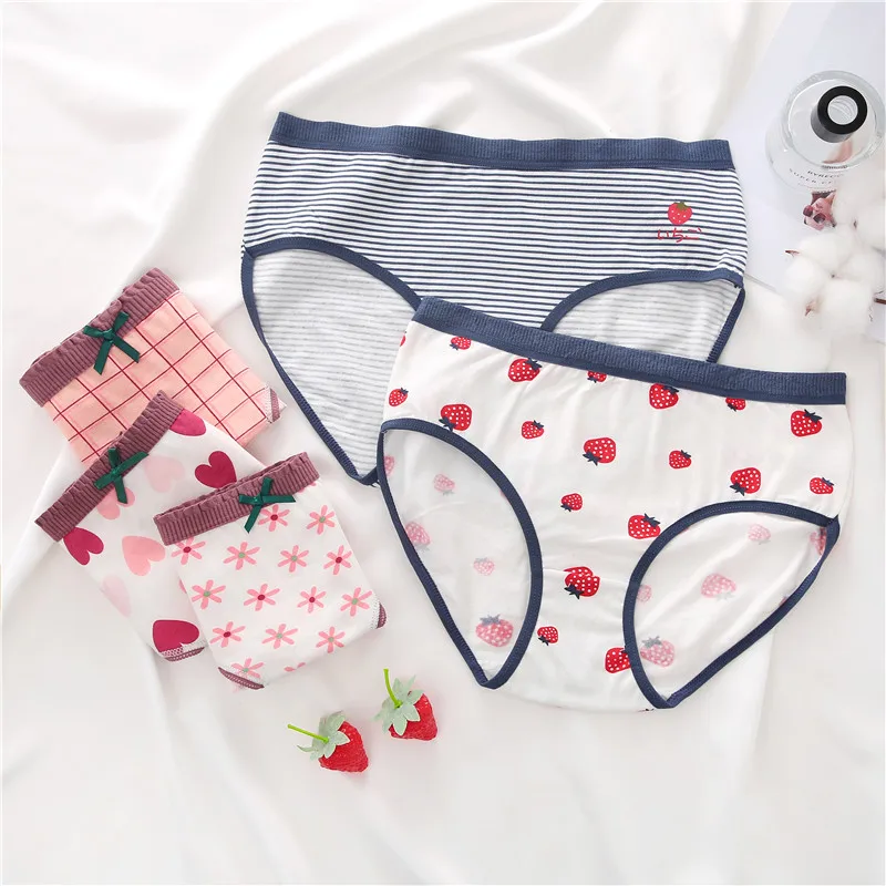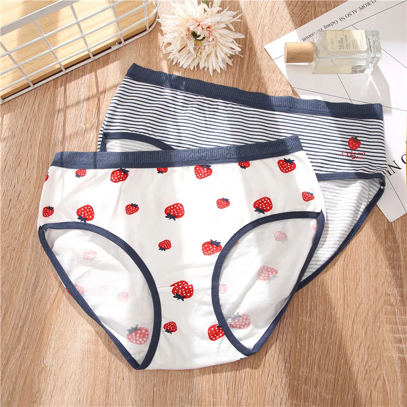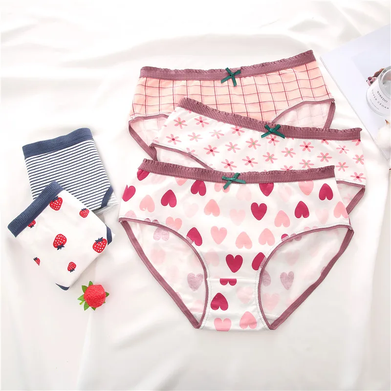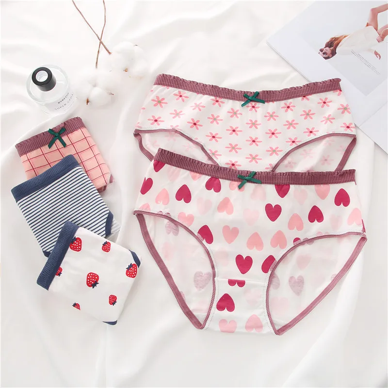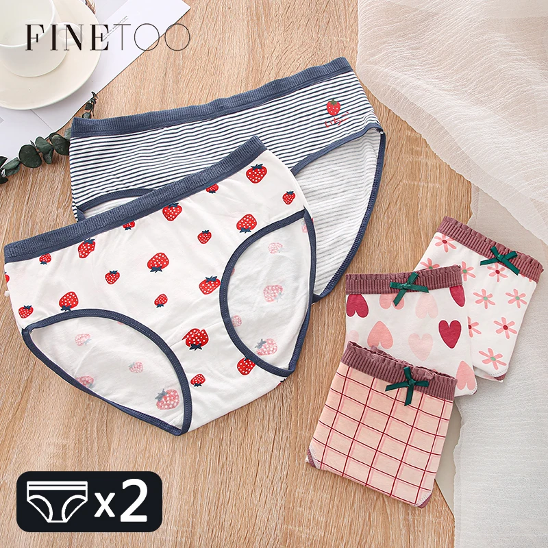 FINETOO женские трусики с принтом, 2 предмета, женское хлопковое нижнее белье, милые трусы для девочек, трусы с цветочным узором в виде сердца, женское нижнее белье