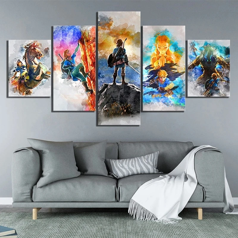 Поп-холст с рамкой 5 панелей Zelda Gamer аниме настенное искусство Hd плакаты картины Домашний Декор Аксессуары для украшения гостиной
