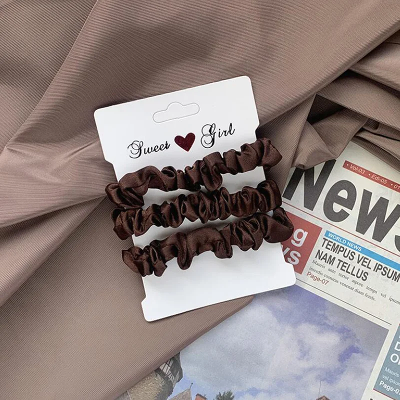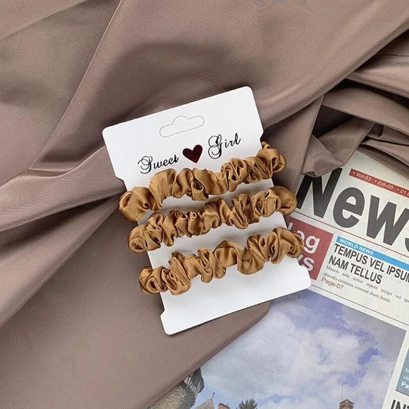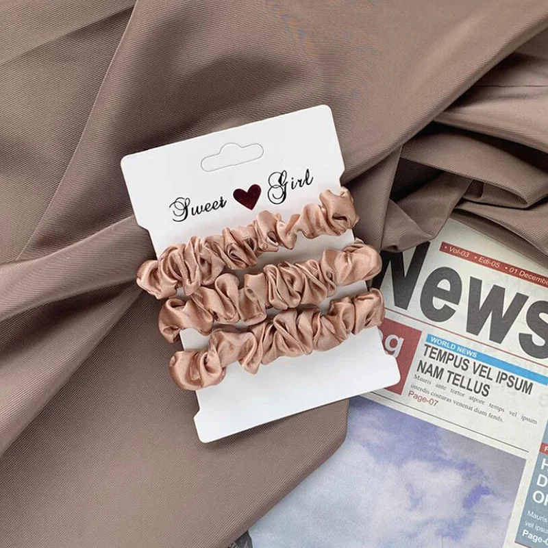 3 шт.компл. женские резинки, атласные шелковые резинки для волос, эластичная резинка для девочек, однотонная резинка для волос, аксессуары для волос для конского хвоста