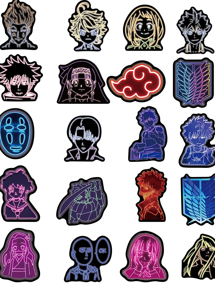 Неоновые смешанные аниме наклейки, украшение сделай сам, блокнот для багажа, водонепроницаемые и съемные, не повторяющиеся наклейки, 103050 шт.