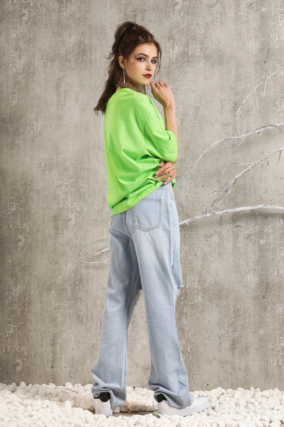 Джинсы женские рваные в стиле Харадзюку, Модные расклешенные брюки ...