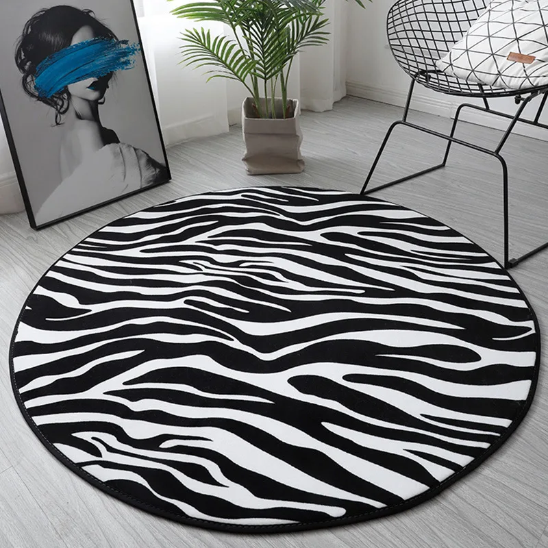 Черно-белый ковер с принтом зебры для гостиной, круглые коврики для стульев, нескользящий ковер для кухни, спальни, коврик для ванной, детский игровой ковер для пола