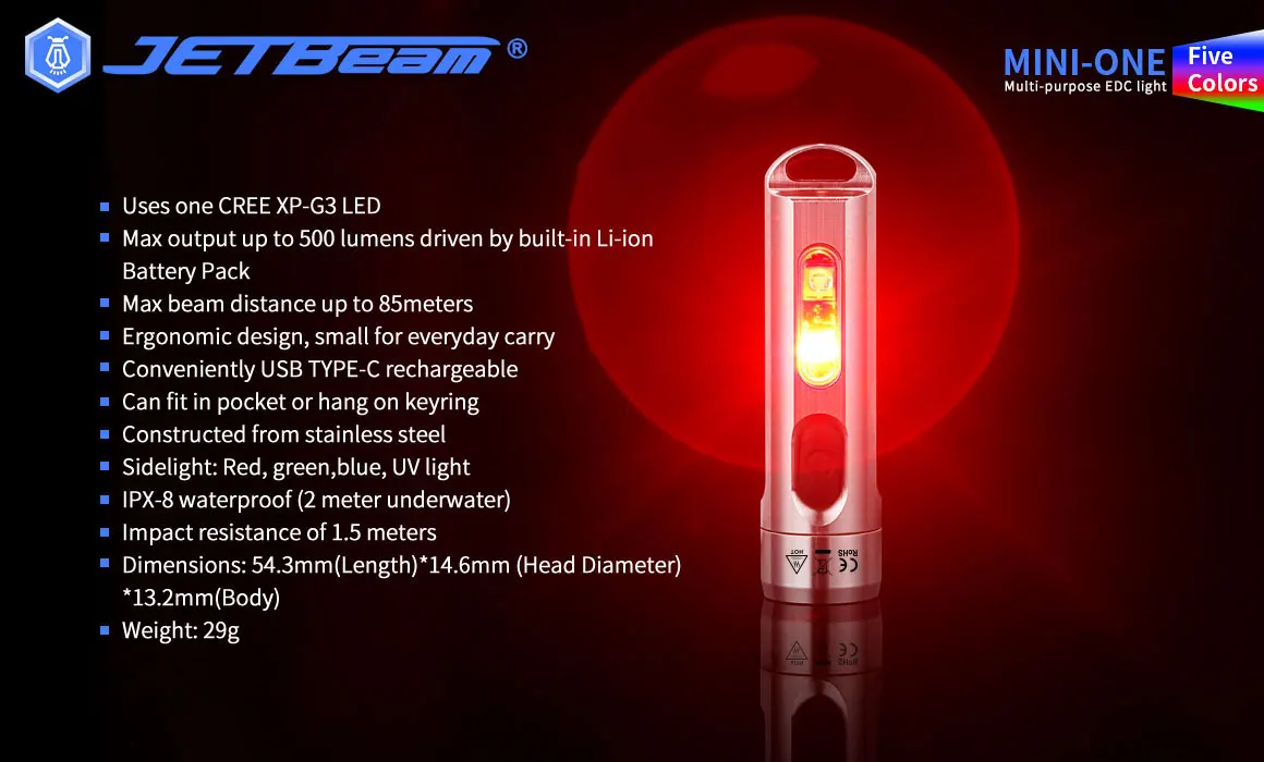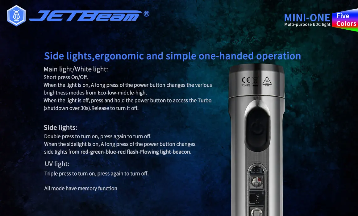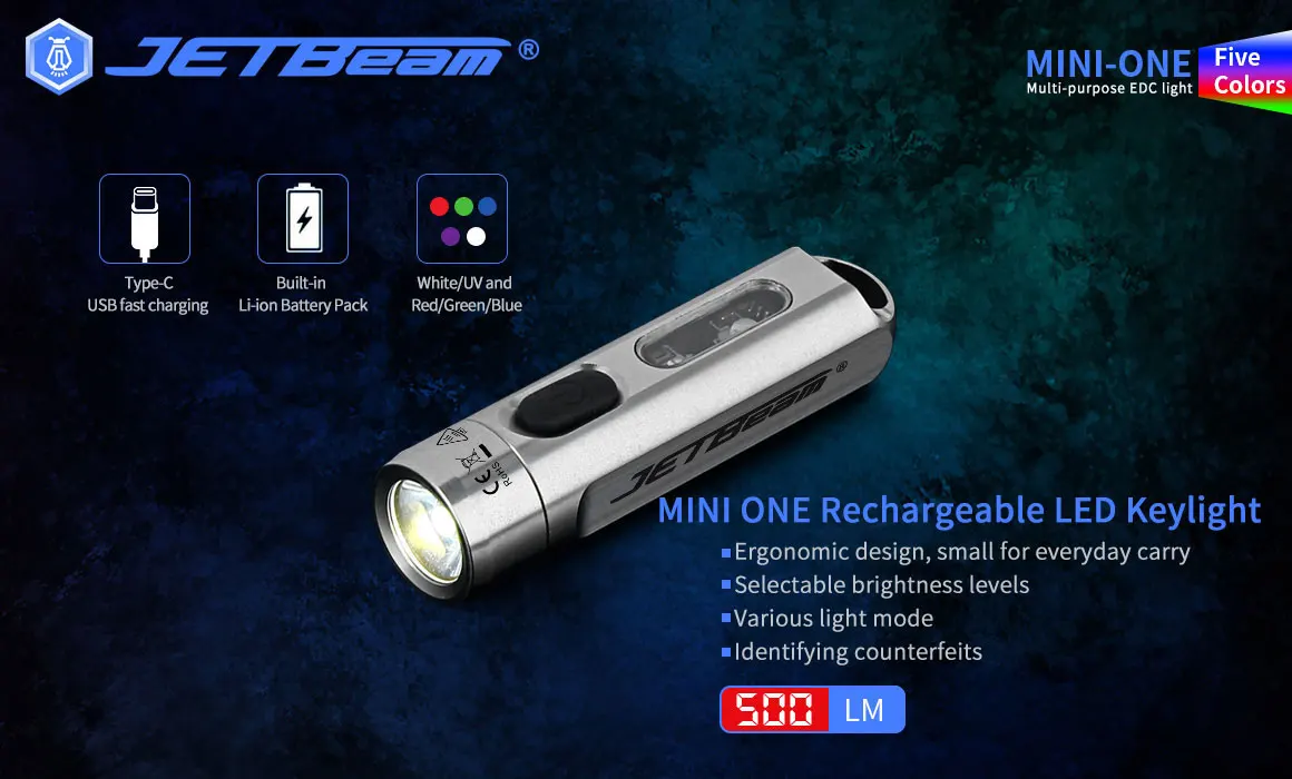 Мини-фонарь JETBEAM с УФ-ламсветильник RGB, с зарядным кабелем типа C, 2 USB-порта