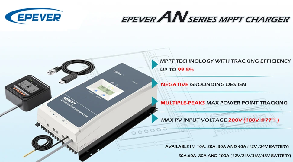 Контроллер солнечного заряда EPEVER MPPT 100A 80A 60A 50A набор индикаторов солнечной панели 12 В 24 в 36 в 48 в автоматический регулятор солнечного заряда батареиTracer5415AN,Tracer5420AN,Tracer6415AN,Tracer8420AN,Tracer10415AN,Tracer10420AN