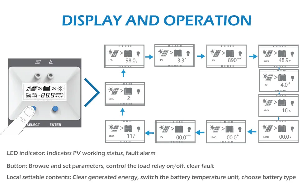 Серия Tracer основана на общем отрицательном дизайне и усовершенствованном алгоритме управления MPPT, с ЖК-дисплеем, отображающим состояние работы, эта продукция является художественной, экономичной и практичной. Улучшенный алгоритм управления MPPT, отслеживающий ряд может минимизировать максимальную скорость потери точки мощности и время потери, Быстро Отслеживайте максимум powerpoint PV массива и получайте максимальную энергию от солнечных модулей в любых условиях; И может увеличить коэффициент использования энергии в Солнечной системе на 10%-30% по сравнению с методом зарядки PWM. Функция ограничения мощности зарядки и тока и функция редукционной зарядки автоматически улучшает стабильность, которая работает при подключении больших pv-модулей и при высокой температуре, а также увеличивает профессиональный чип защиты для порта связи, дальнейшее повышение надежности и соответствие различным требованиям к применению.