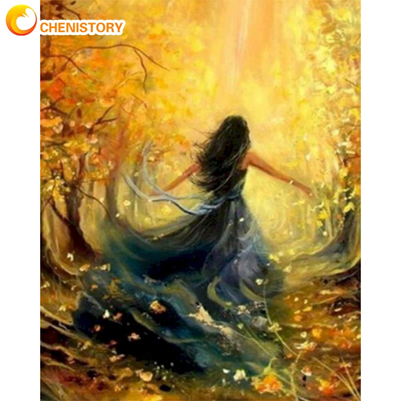 RUOPOTY картина маслом по номерам с рамкой, маленькая девочка в тра...