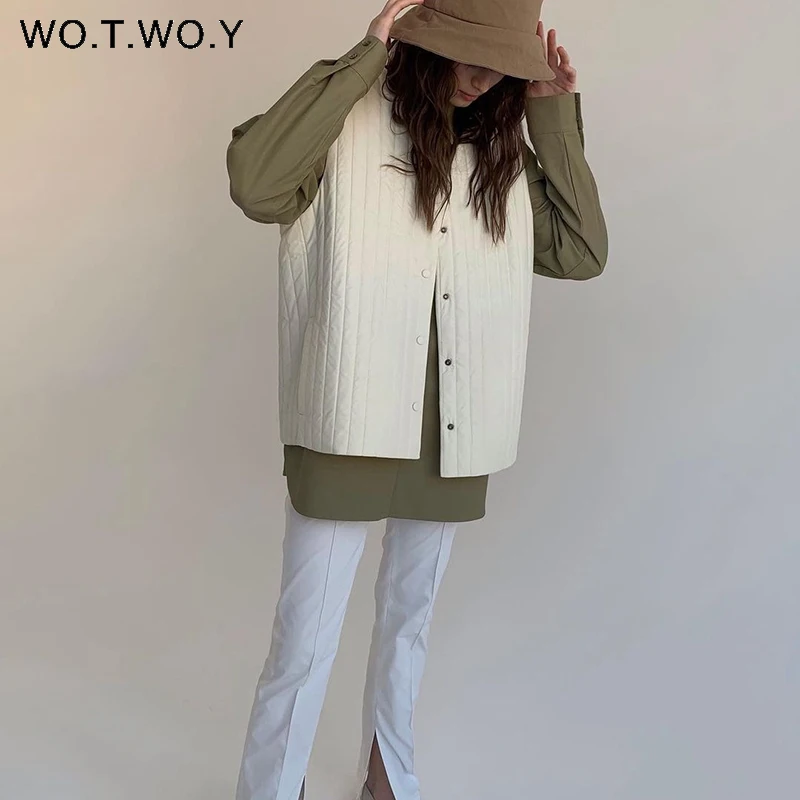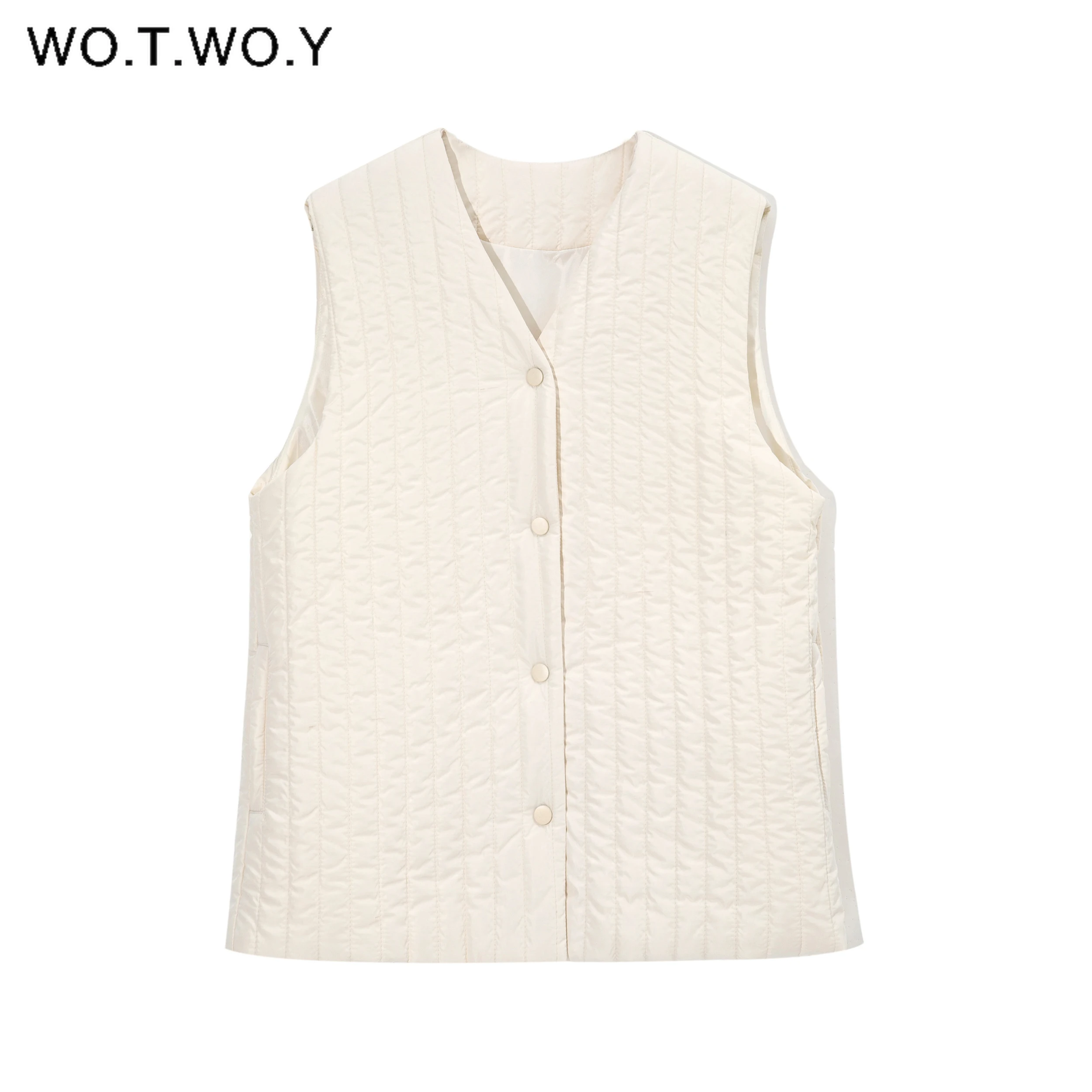 Женский жилет без рукавов WOTWOY, повседневный теплый однобортный жилет с v-образным вырезом, 2022