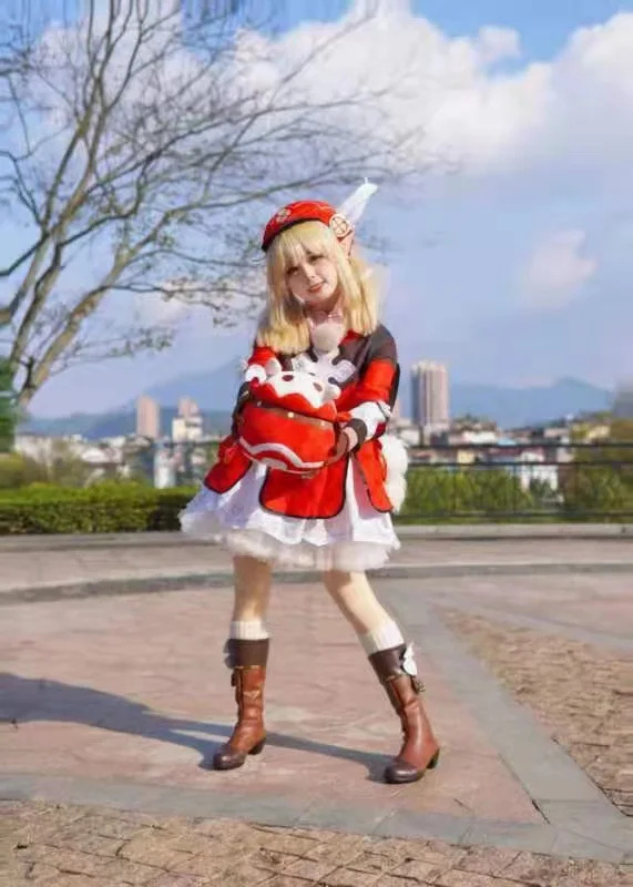 Косплей игры Genshin Impact Klee косплей костюм парики Лолита наряд...