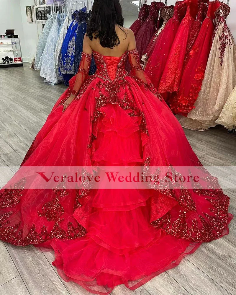 Красное блестящее бальное платье, платья Quinceanera со съемными рукавами, милое платье 16, вечерняя одежда 2022 Vestidos XV лет
