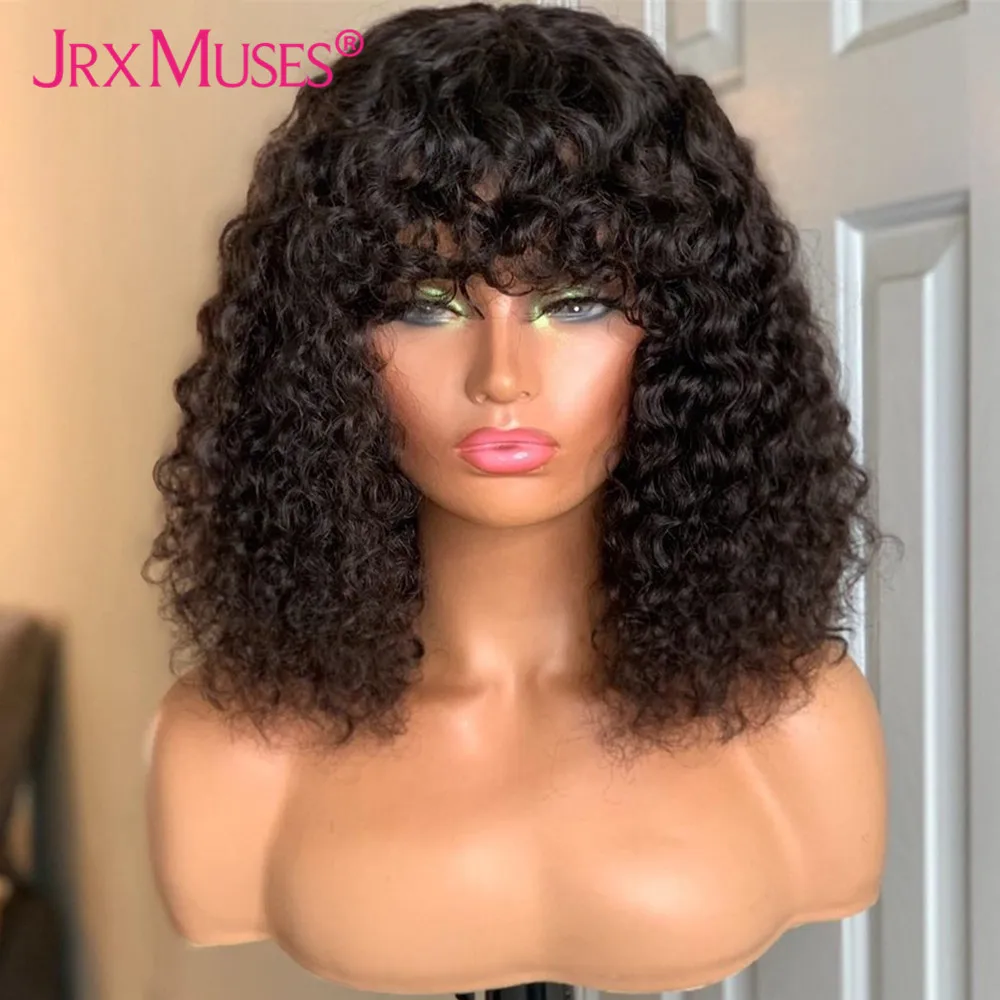 Парики из перуанских вьющихся человеческих волос с челкой, короткие...