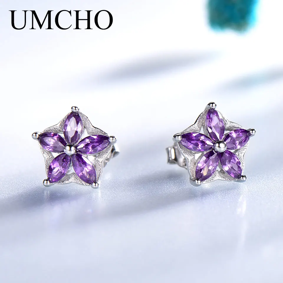 Женские серьги-гвоздики UMCHO из стерлингового серебра 925 пробы, модные серьги-гвоздики с кристаллами, ювелирные изделия для женщин