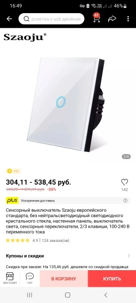 Выключатель пришёл быстро - НО Не Работает…. Поэтому не советую этого продавца…