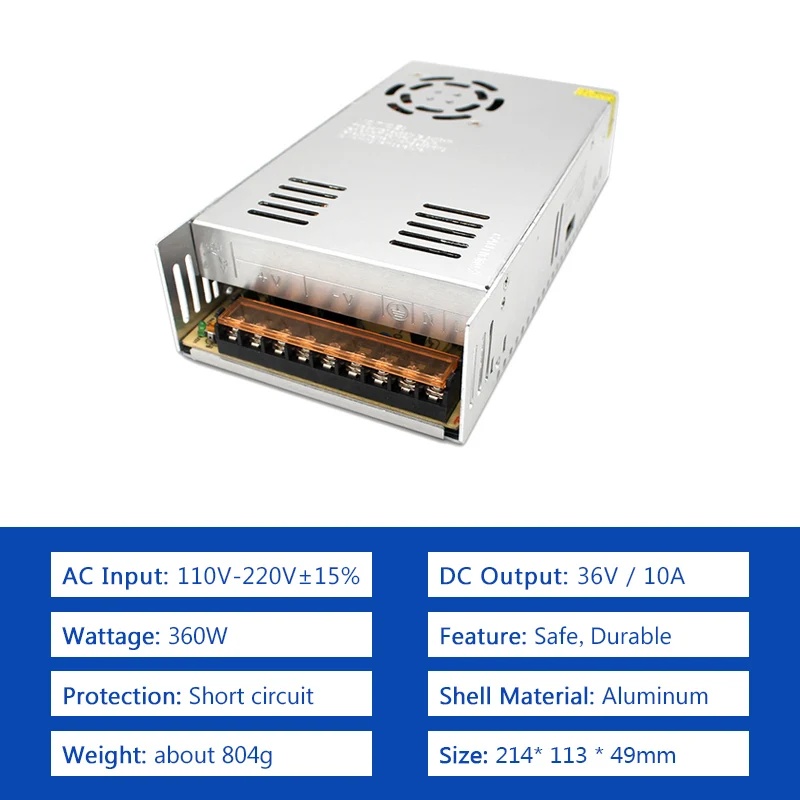 Импульсный источник питания HTHwish, 36 В, 10 А, от 220 В до 36 вольт, 360 Вт, трансформатор переменного тока в постоянный ток, Светодиодный драйвер для светодиодной ленты CCTV