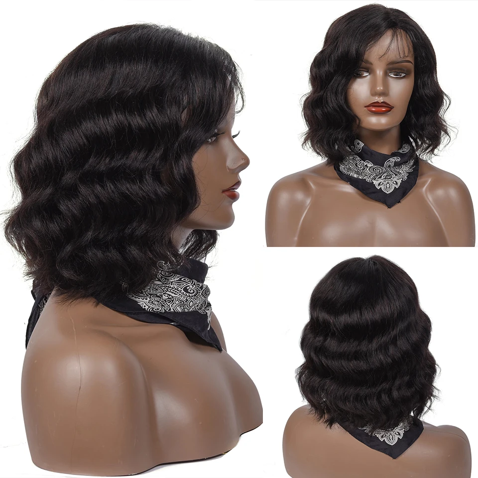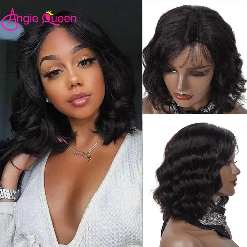 Женские парики ANGIE QUEEN из человеческих волос, бразильские волнистые волосы без клея, полностью машинная работа, короткие, дешевые